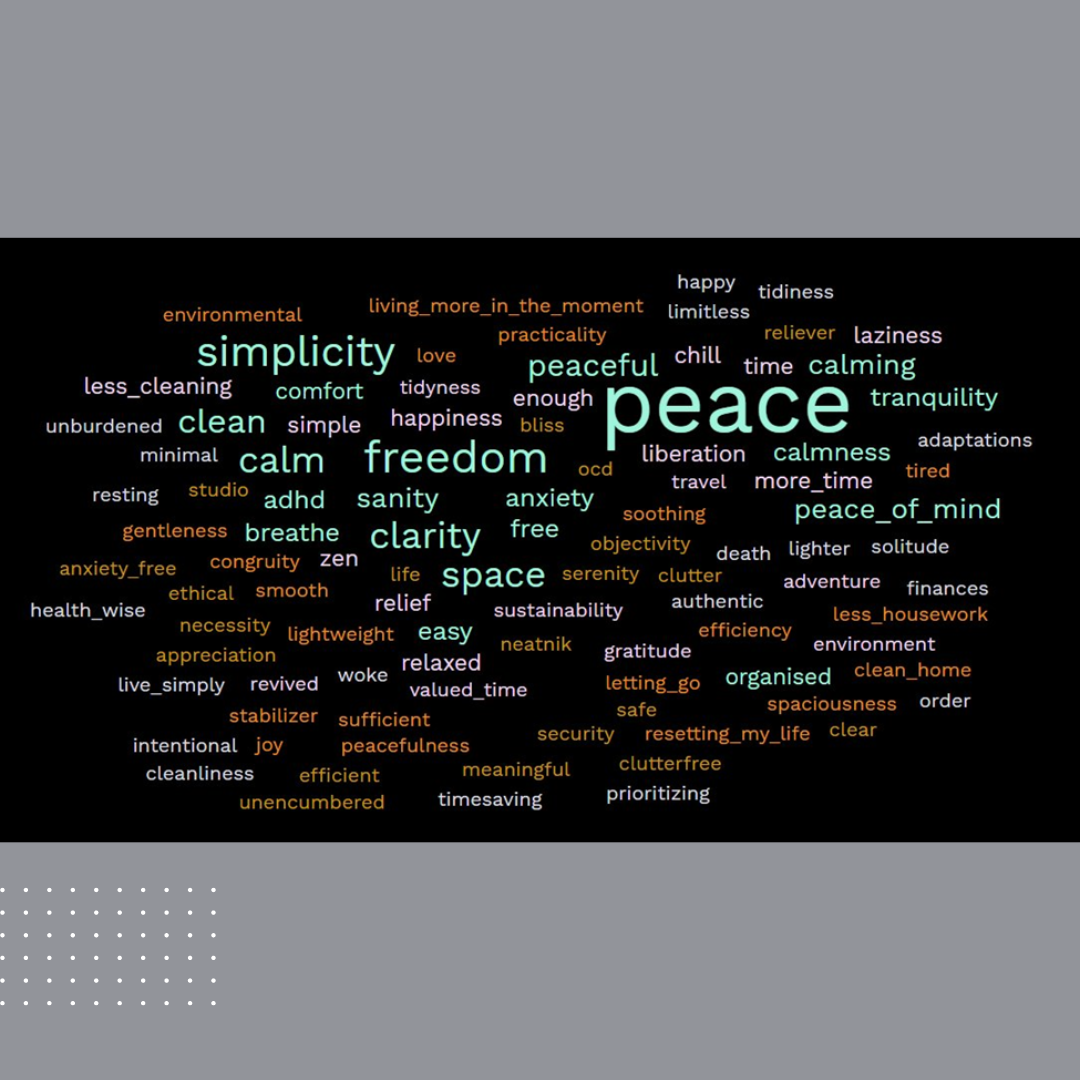 We live in a world where materialism is often glorified, yet many of us find solace in letting go. Writers, bloggers, and influencers often praise minimalism for the peace, clarity, and freedom it brings, but it’s still far from mainstream. In a recent online forum, minimalists shared words like serenity, sustainability, freedom, and sanity. Their 293 responses created a beautiful word cloud that hints at the vast emotional landscape of this lifestyle.